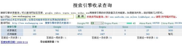 通過上圖可以看到,我鏈接的網(wǎng)站對方的百度收錄情況,對方的PR值情況,對方首頁內(nèi)頁是否掛了我的鏈接,掛的關(guān)鍵詞是什么,是在對方外鏈第幾的個位置,對方最近的百度快照日期又是多少,這些這些都是交換友情鏈接衡量SEO效果的標(biāo)準(zhǔn)。有了這個工具,交換再多友情鏈接都不怕沒時間檢查了。我現(xiàn)在就每周檢查一次,發(fā)現(xiàn)有提示沒有掛我的網(wǎng)站,就去實際檢查下,確認(rèn)對方去掉了,我這邊也就相應(yīng)的去掉。該網(wǎng)站地址: