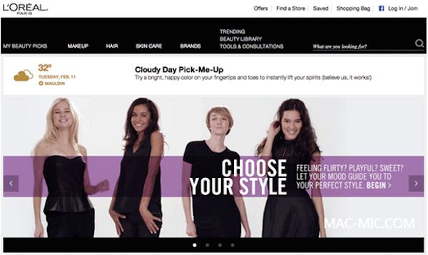 所以,如果你的設(shè)計是針對女性的,那么紫色會是一個相當(dāng)不錯的選擇,因為紫色在女性受眾中普遍受歡迎,但是對于多數(shù)男性而言,紫色并不太受歡迎。在下方的圖片中,紫色被運用在巴黎歐萊雅的網(wǎng)頁中,效果非常不錯。主體使用的黑白配色,黑色的頁頭頁腳看起來非常優(yōu)雅,紫色點綴其中,整體感非常不錯。實際上他們的產(chǎn)品并不便宜,但是給人感覺比較高端。