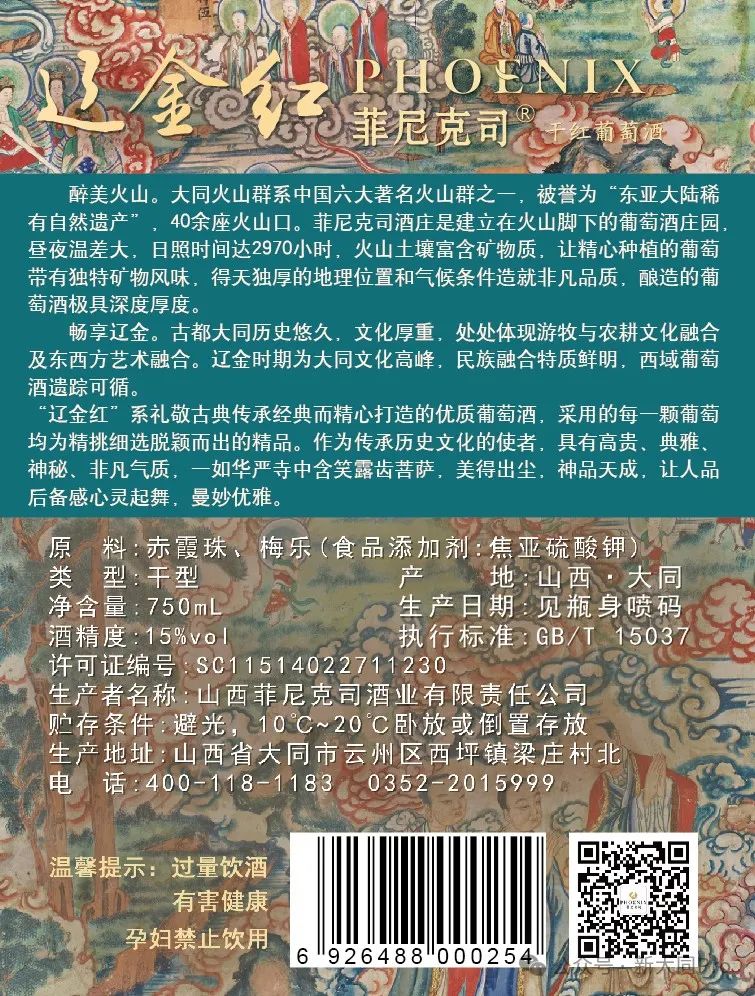 遼金時(shí)期為大同文化高峰之一,民族融合特質(zhì)鮮明,西域葡萄酒遺蹤可循。“遼金紅”系禮敬古典、傳承經(jīng)典而精心打造的優(yōu)質(zhì)葡萄酒,作為傳承歷史文化的使者,“遼金紅”具有高貴、典雅、神秘、非凡氣質(zhì),一如遼金古剎華嚴(yán)寺中含笑露齒菩薩,美得出塵,神品天成,讓廣大游客通過(guò)舌尖更能深入體驗(yàn)古都大同厚重魅力。