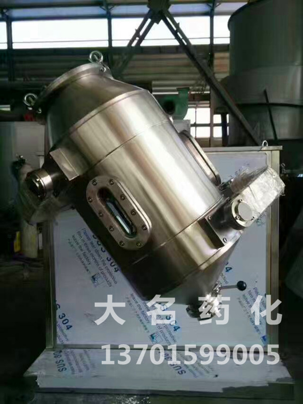 2、 三維擺動(dòng)混合機(jī)的混合筒設(shè)計(jì)身體內(nèi)壁經(jīng)過精密拋光;