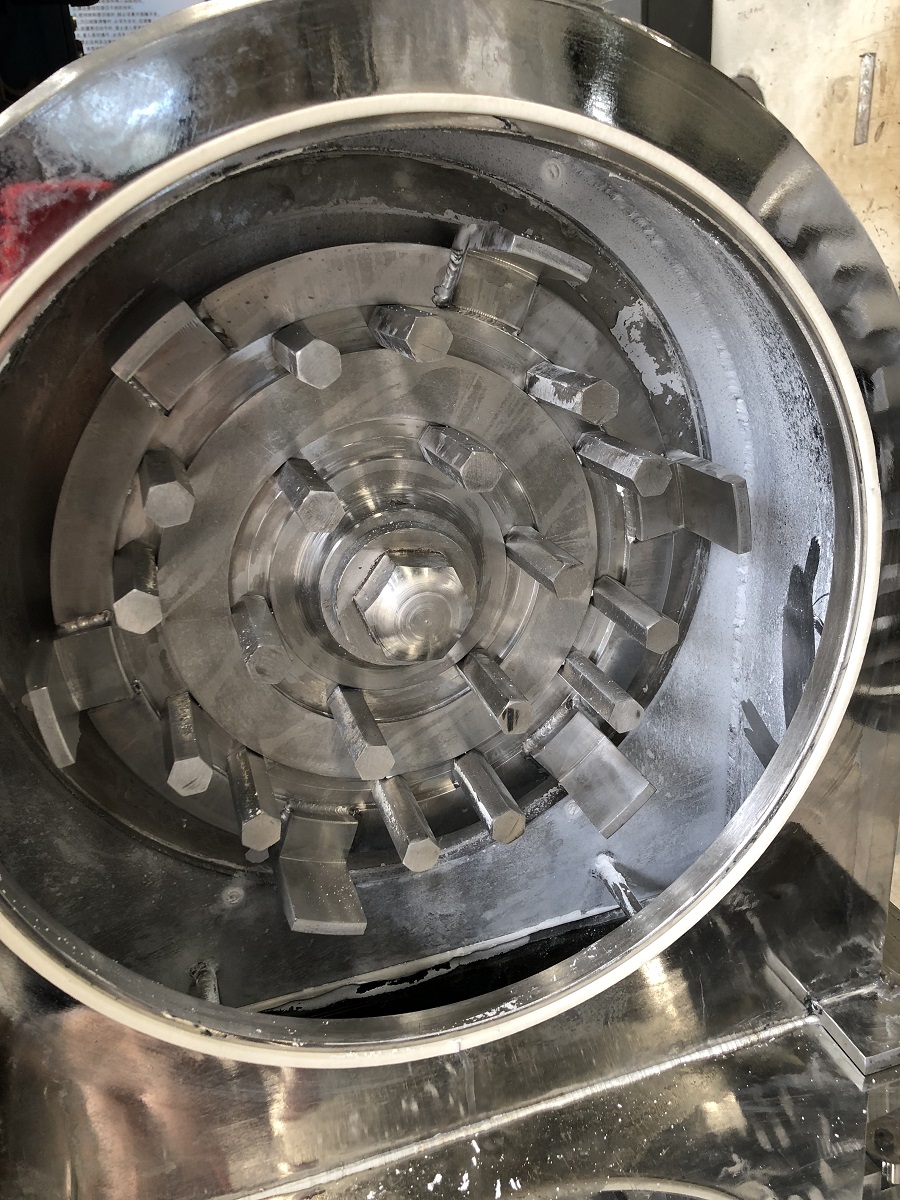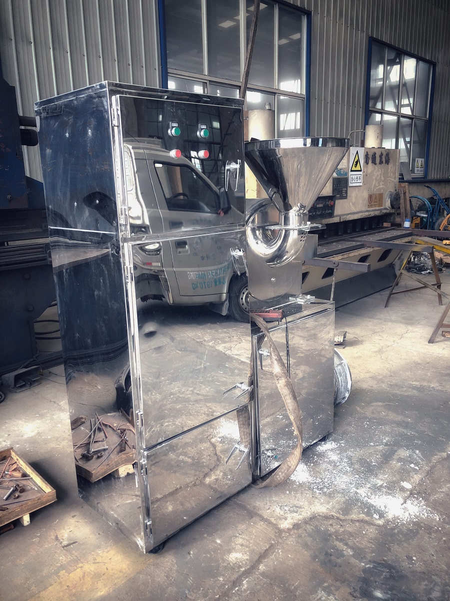 以下6張圖為40BX高效粉碎機帶除塵的整圖以及細節(jié)圖,圖片均為當天現(xiàn)場制作車間拍攝