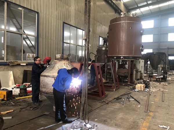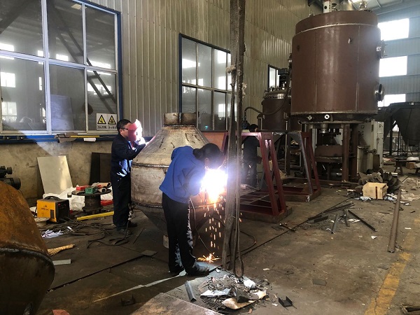 常州大名藥化設(shè)備有限公司新一訂單制藥用SZG-1000型雙錐回轉(zhuǎn)真空干燥機(jī),車間拍攝。