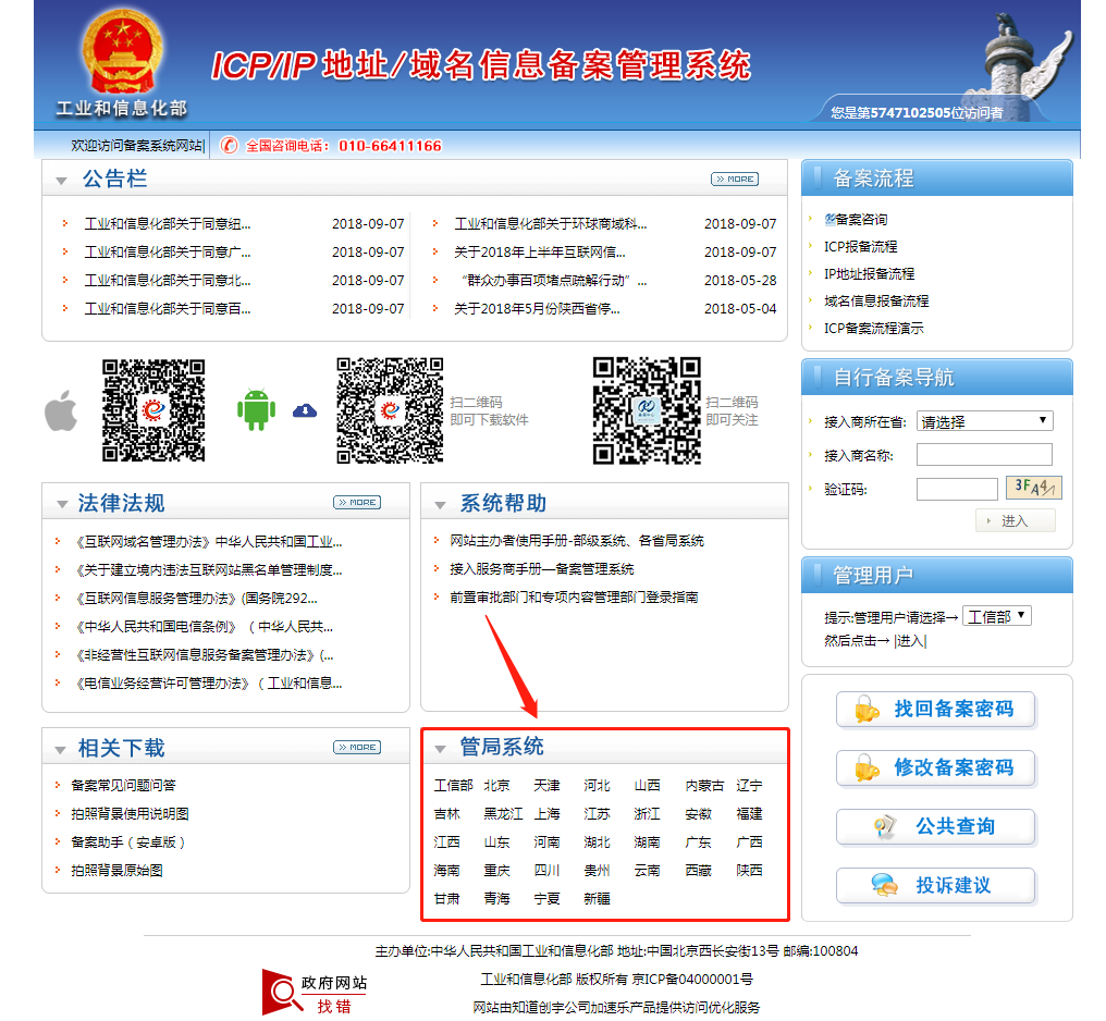 3.1、收到工信部發(fā)出的驗(yàn)證碼后,訪問(wèn)所在省市通信管理局網(wǎng)站。http://www.beian.miit.gov.cn/
