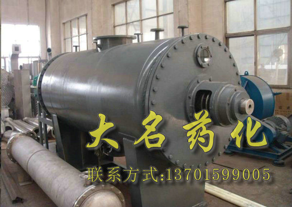 本機(jī)是一種新穎臥式間歇式真空干燥設(shè)備,濕物料經(jīng)傳導(dǎo)蒸發(fā),帶有刮板攪拌器不斷清除熱面上的物料,并在容器內(nèi)推移形成循環(huán)流,水份蒸發(fā)后由真空泵抽出。