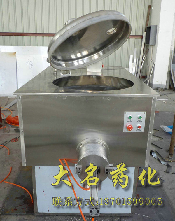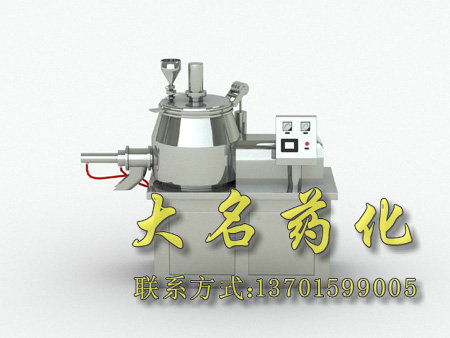 粉體物料與粘合劑在圓筒形容器中由底部混合漿充分混合成濕潤(rùn)軟材,然后由側(cè)置的高速粉碎槳切割成均勻的濕顆粒。
